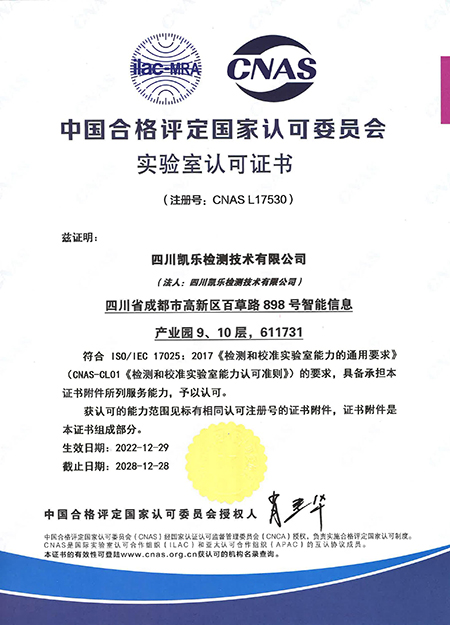 凱樂檢測認證集團具備檢驗檢測機構(gòu)資質(zhì)認定(CMA)、實驗室認可(CNAS)資質(zhì),目前通過CMA的包括理化綜合、重金屬、農(nóng)藥殘留有機物、獸藥殘留有機物、微生物、物理、輻射等檢測指標近4000項,涉及環(huán)境檢測領(lǐng)域的水和廢水、環(huán)境空氣和廢氣......